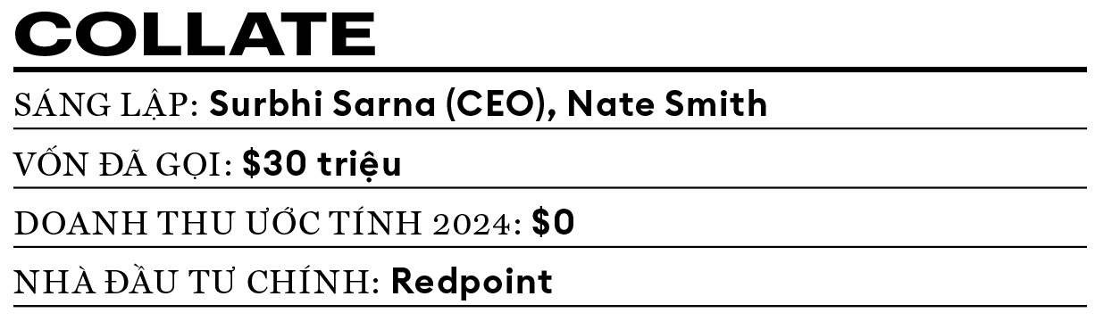 Năm 2012, khi Surbhi Sarna bắt đầu gây quỹ cho nVision Medical – startup chuyên điều trị ung thư buồng trứng – cô phải chật vật mới gom đủ 500.000 USD. Sáu năm sau, Sarna bán công ty với giá 275 triệu USD, rồi dành 5 năm tiếp theo làm đối tác tại Y Combinator. Lần này, việc huy động vốn diễn ra thuận lợi hơn nhiều: Sarna gọi được 30 triệu USD vốn hạt giống cho Collate, startup có trụ sở tại San Francisco. Sứ mệnh của Collate là dùng AI để tự động hóa thủ tục giấy tờ trong ngành khoa học đời sống, từ hồ sơ thử nghiệm lâm sàng đến các giấy phép của FDA. “Những thứ từng mất vài tháng, giờ có thể xử lý chỉ trong vài ngày,” Sarna (39 tuổi) cho biết. Doanh thu của Collate dự kiến đạt một triệu USD trong năm nay.