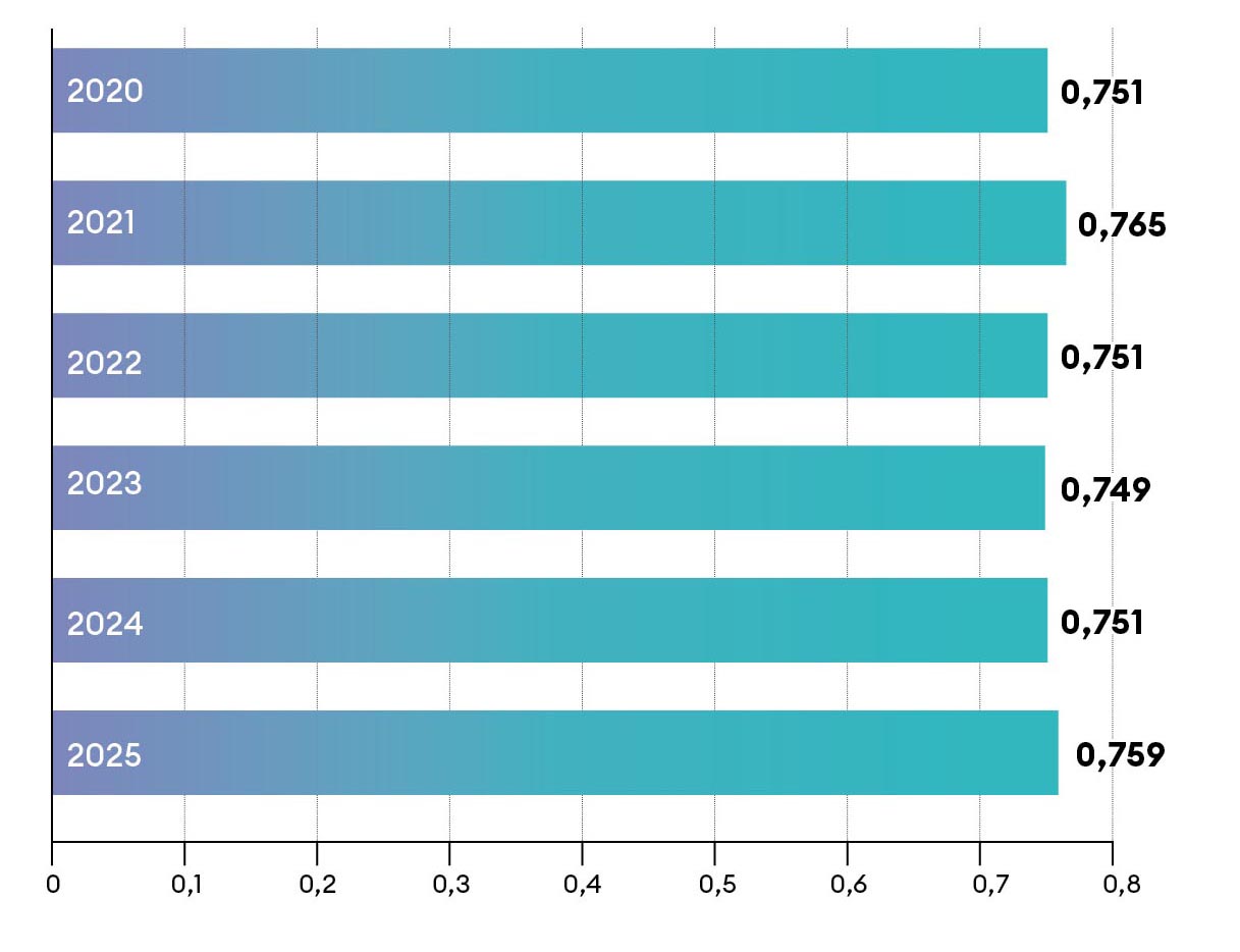 Chỉ số khoảng cách giới toàn cầu (Global Gender Gap Index) được đo trên thang điểm từ 0 đến 1, trong đó điểm số càng cao thể hiện mức độ tiến gần đến bình đẳng giới (tức là tỷ lệ khoảng cách giới đã được thu hẹp, với các con số đã được làm tròn).
