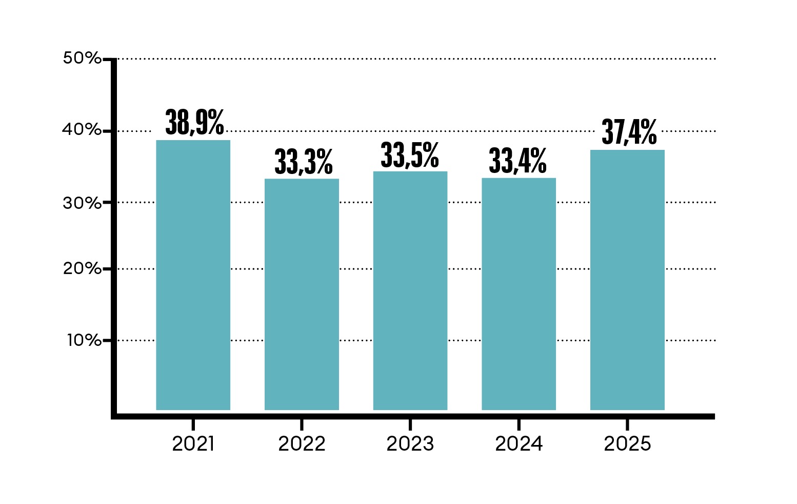 Năm 2025 ghi nhận sự suy giảm về tỷ lệ doanh nghiệp có phụ nữ giữ vị trí lãnh đạo cao nhất so với năm 2024 (với tỷ lệ 22,4%) trong khi tỷ lệ doanh nghiệp do phụ nữ nắm quyền sở hữu chi phối không thay đổi so với năm 2024.
