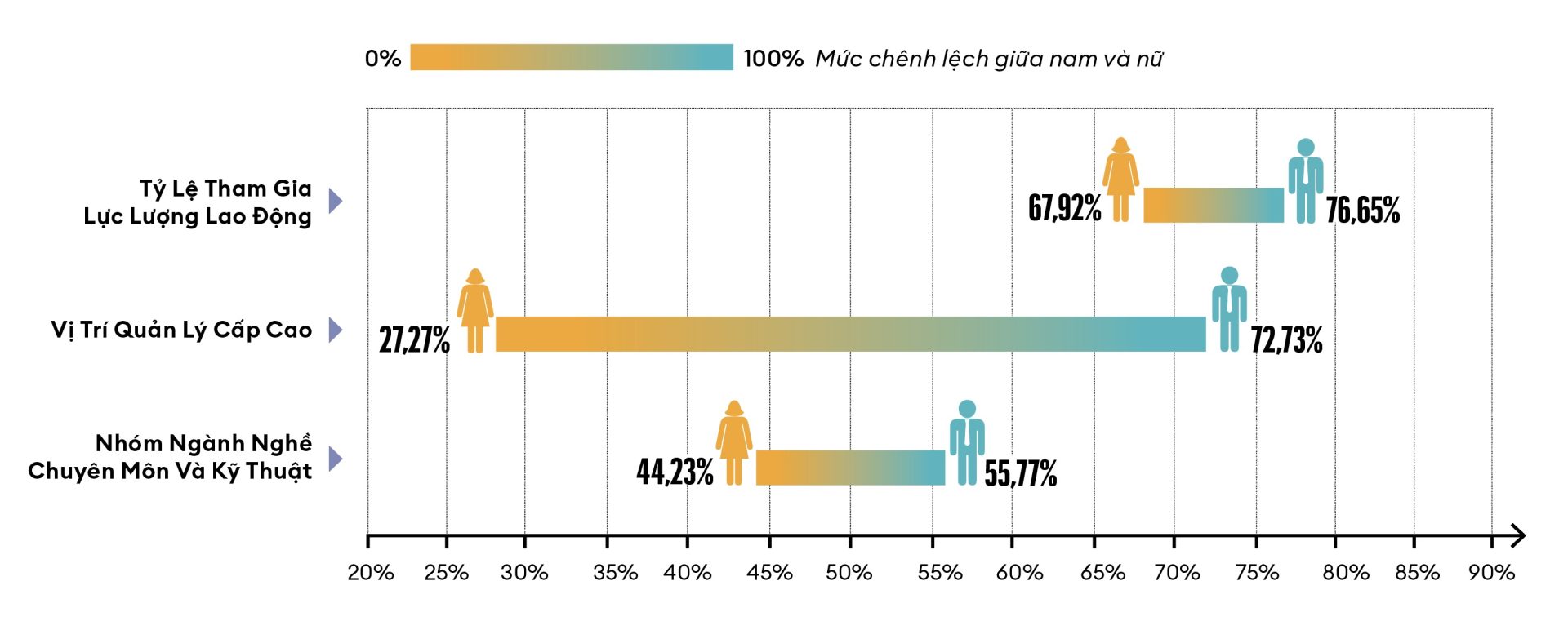 Việt Nam ghi nhận sự tiến bộ nhanh trong việc trao quyền lãnh đạo cho phụ nữ ở các vai trò tham gia hoạch định chiến lược đầu tư và tăng trưởng, nhưng khoảng cách giới vẫn tồn tại ở vị trí quyền lực nhất trong doanh nghiệp.