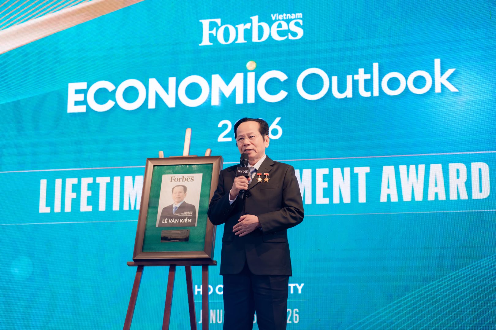 Cũng tại sự kiện, Forbes Việt Nam đã trang trọng vinh danh Doanh nhân Lê Văn Kiểm – Chủ tịch Tập đoàn KN Holdings, Anh hùng lao động thời kỳ đổi mới – với giải thưởng “Thành tựu trọn đời”, ghi nhận những đóng góp của ông cho sự phát triển của nền kinh tế Việt Nam.