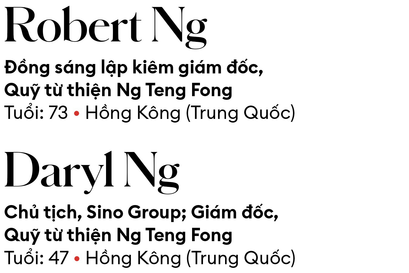 Tháng 3.2025, tỷ phú Robert Ng và con trai Daryl quyên góp 26 triệu USD thông qua quỹ từ thiện Ng Teng Fong của gia đình và Tập đoàn Sino, để hỗ trợ phát triển trí tuệ nhân tạo (AI) tại Hồng Kông (Trung Quốc). Khoản này tài trợ cho Trung tâm Nghiên cứu và Phát triển AI Hồng Kông (HKGAI), hoạt động dưới sự bảo trợ của InnoHK, một sáng kiến từ chính phủ nhằm thúc đẩy thành phố trở thành trung tâm nghiên cứu quan trọng. Hợp tác với các tổ chức nghiên cứu do Đại học Khoa học & Công nghệ Hồng Kông dẫn dắt, HKGAI đã ra mắt HKGAI V1 – mô hình ngôn ngữ lớn phát triển nội địa. Tiếp theo là HKChat – chatbot AI có thể giao tiếp tiếng Anh, tiếng Quảng Đông và tiếng Quan Thoại.