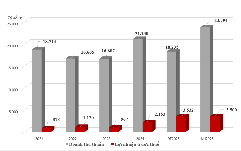 Lũy kế chín tháng, doanh thu thuần GELEX Electric đạt 18.235 tỷ đồng, tăng 24%; lợi nhuận trước thuế đạt 3.532 tỷ đồng, tăng tới 162%. Doanh nghiệp đã nâng mục tiêu lợi nhuận trước thuế năm 2025 lên hơn 3.500 tỷ đồng, tăng 108% so với kế hoạch cũ, và chỉ sau ba quý đã vượt kế hoạch mới.