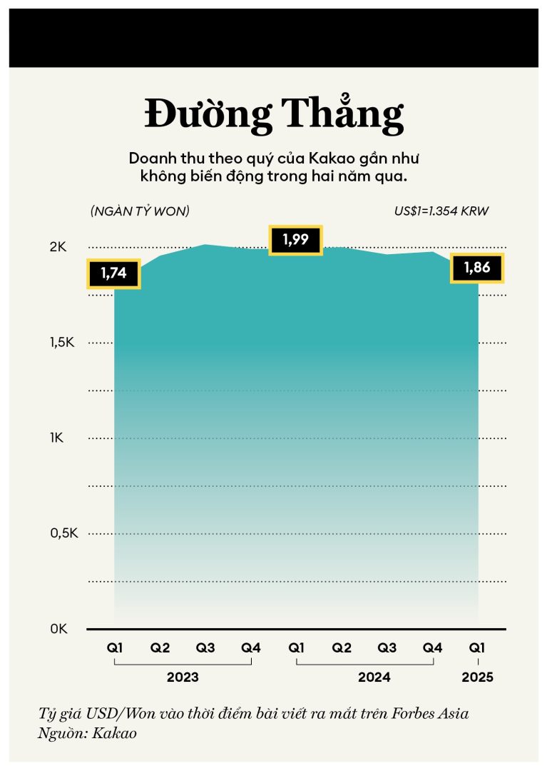 Đây là một bước ngoặt quan trọng đối với Kakao. Khác với những tên tuổi lớn như Samsung hay Hyundai vốn dựa vào xuất khẩu toàn cầu, Kakao lại phụ thuộc hoàn toàn vào thị trường Hàn Quốc, nơi đang phải đối mặt với một cuộc suy thoái ngày càng trầm trọng. Kinh tế trong nước vừa ghi nhận mức giảm 0,2% GDP trong quý đầu năm, chịu tác động từ nguy cơ chiến tranh thương mại toàn cầu, sức mua của người tiêu dùng suy giảm và bất ổn chính trị kéo dài.