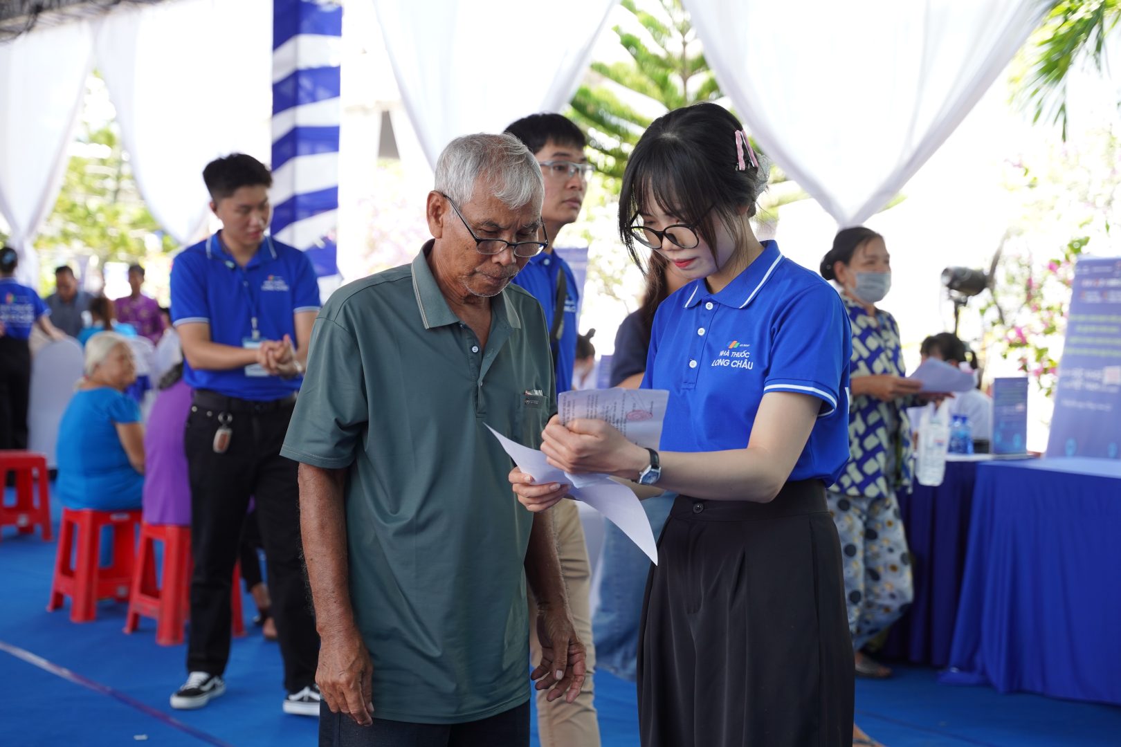 Tham gia chương trình, hệ thống nhà thuốc và trung tâm tiêm chủng Long Châu đã phối hợp cùng Sở Y tế và các đơn vị liên quan tổ chức chương trình thăm khám, chữa bệnh và cấp phát thuốc miễn phí cho khoảng 4.000 người dân thuộc các gia đình chính sách, người có hoàn cảnh khó khăn, người già neo đơn, đồng bào dân tộc Khmer tại bốn xã gồm: Trà Côn, Ngãi Tứ, Tập Sơn và Long Hiệp, thuộc tỉnh Vĩnh Long.