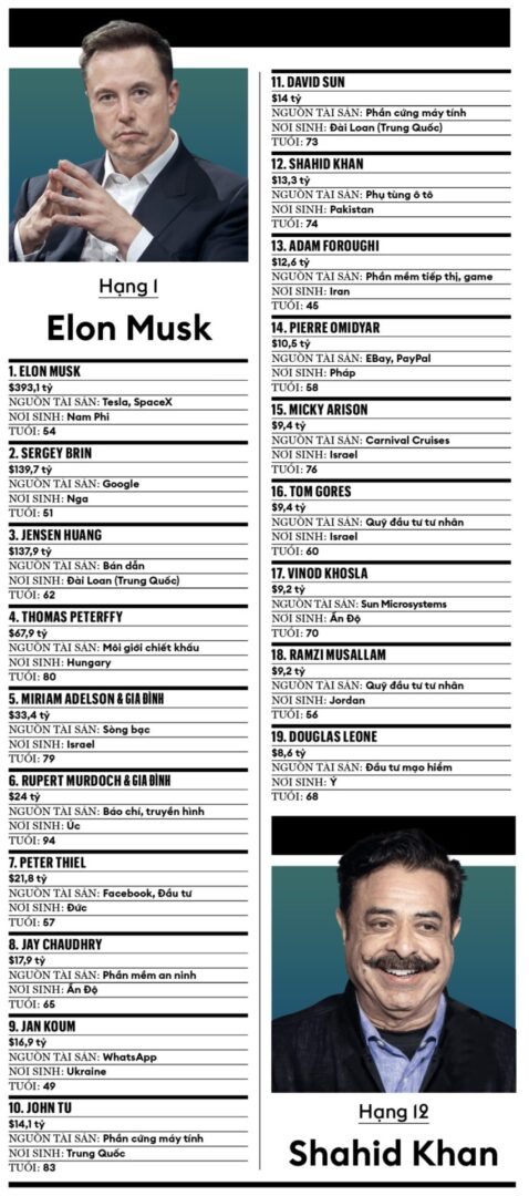 Xem đầy đủ danh sách tại: https://www.forbes.com/sites/mattdurot/2025/07/09/americas-richest-immigrants-2025/