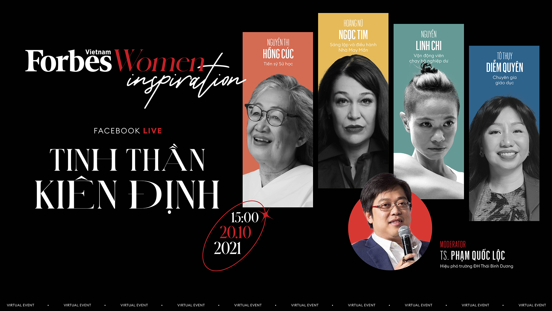 Trong cuộc trò chuyện trực tuyến đặc biệt nhân kỷ niệm Ngày Phụ nữ Việt Nam (20.10), bốn gương mặt trong danh sách 20 Phụ nữ Việt Nam truyền cảm hứng năm 2021 lần đầu tiên của Forbes Vietnam sẽ chia sẻ góc nhìn của họ về cách họ duy trì sự bền bỉ, dẻo dai để thích ứng với cuộc sống trong bối cảnh dịch bệnh trong khi chủ động hướng tới tương lai tích cực.