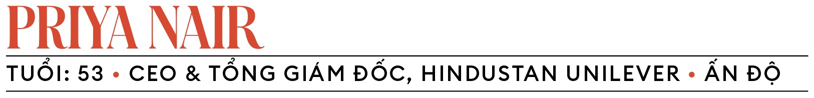 Hindustan Unilever (HUL), công ty hàng tiêu dùng có giá trị nhất Ấn Độ (vốn hóa thị trường 62 tỷ USD), kinh doanh mọi thứ từ xà phòng đến trà, năm 2025 đã bổ nhiệm bà Priya Nair làm CEO kiêm tổng giám đốc nữ đầu tiên. Bà Nair gia nhập HUL, công ty con chi nhánh Ấn Độ của tập đoàn Unilever, cách đây 3 thập kỷ, làm việc ở bộ phận bán hàng và tiếp thị. Với vai trò mới, bà đang đối mặt nhiều thử thách. Doanh thu và lợi nhuận của HUL chậm lại trong 2 năm qua. Năm 2025, công ty có doanh thu 7,3 tỷ USD. Bà đang thúc đẩy mạnh mẽ quá trình chuyển đổi số tại HUL, với chiến lược “hiện đại hơn, hấp dẫn hơn và trẻ trung hơn”.