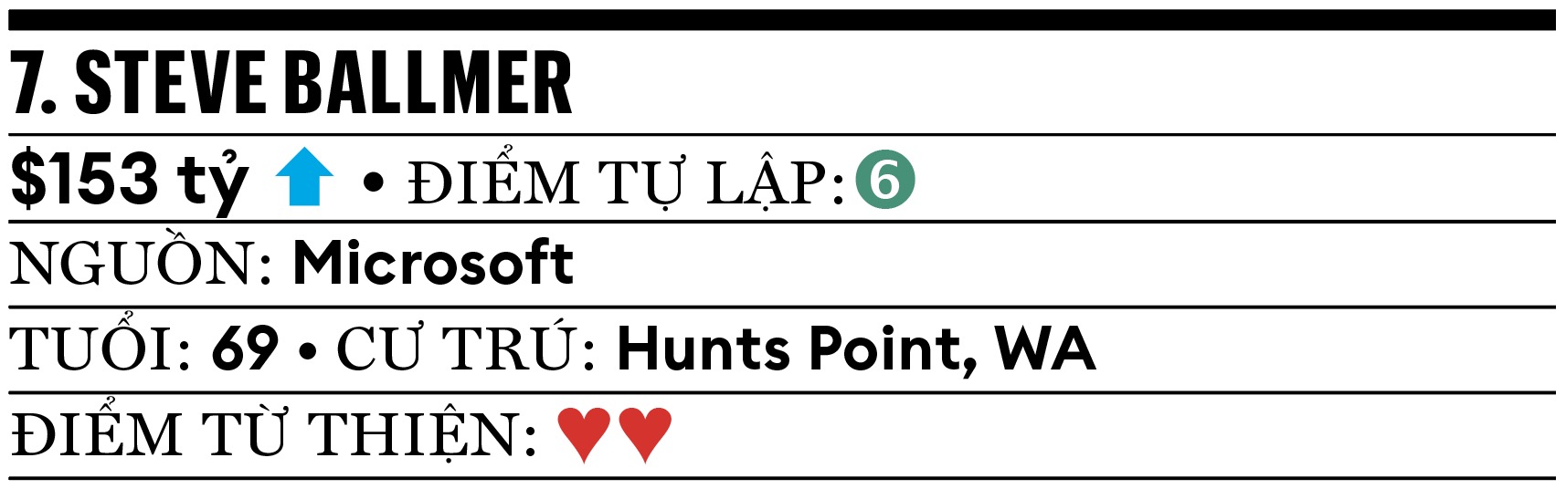 Cựu CEO của Microsoft từng nói rằng, ông muốn sở hữu cổ phiếu MSFT đến khi quyên góp từ thiện hoặc qua đời. Ông đã giữ lời. Trong podcast gần đây, ông tiết lộ vẫn là cổ đông lớn nhất của Microsoft – công ty có vốn hóa 3,8 ngàn tỷ USD. Từ tháng 2.2014, giá cổ phiếu Microsoft tăng 1.601%, gấp nhiều lần mức tăng trung bình 355% của S&P 500. Ngoài ra, Steve Ballmer cũng thành công với Los Angeles Clippers, đội bóng rổ NBA ông mua cách đây 11 năm với giá 2 tỷ USD, hiện có giá khoảng 5,5 tỷ USD.