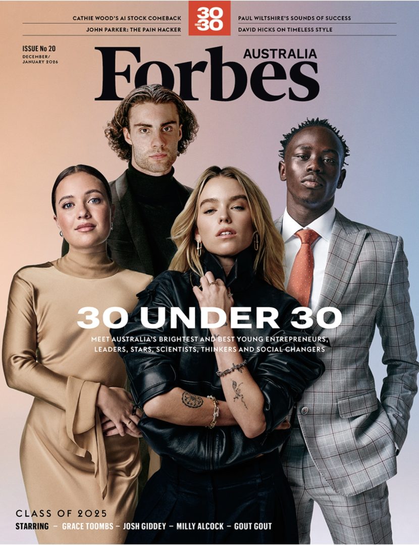 Bốn gương mặt sáng giá dẫn đầu danh sách “Under 30 năm 2025” của Forbes Úc gồm (từ trái sang): Grace Toombs, 23 tuổi, người sáng lập June Health, doanh nghiệp tầm soát chăm sóc sức khỏe tại nhà cho phụ nữ; ngôi sao bóng rổ 23 tuổi Josh Giddey, với bản hợp đồng bốn năm trị giá 100 triệu USD cùng đội Chicago Bulls, trở thành vận động viên hưởng lương cao nhất Úc; nữ diễn viên 25 tuổi Milly Alcock, mới nổi trong phim House of the Dragon của HBO và loạt phim ngắn Sirens trên Netflix; và vận động viên chạy nước rút 18 tuổi, Gout Gout, hiện giữ kỷ lục châu Đại Dương ở cự ly 200m (20,02 giây).